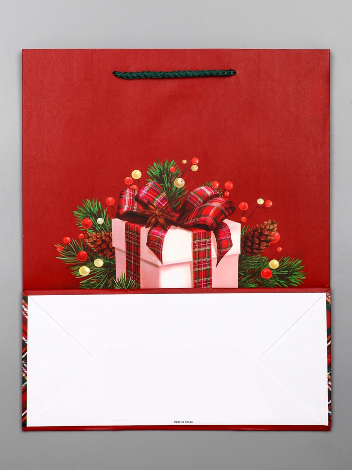Завершите образ подарка: Такой пакет сам по себе становится частью презента. Он не требует дополнительной обертки — просто поместите подарок внутрь, и он будет готов к вручению. Прочный и красивый, он подчеркнет ценность вашего внимания и станет завершающим штрихом к главному зимнему празднику.