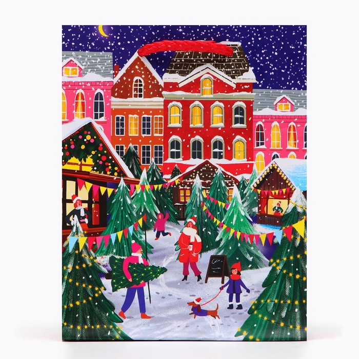 Пакет подарочный новогодний ламинированный «Праздник в городе», 11.5×14.5×6.5 см