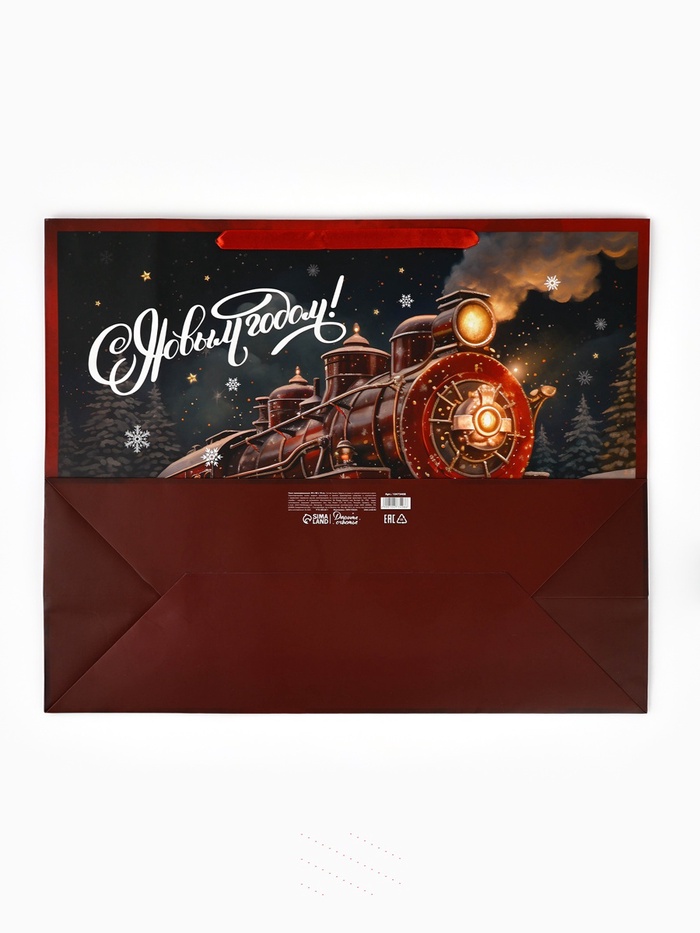 Яркий и красочный дизайн с новогодними мотивами придает пакету праздничный и жизнерадостный вид. Это делает его идеальным выбором для использования в качестве подарочной упаковки на различные зимние праздники, такие как Новый год или Рождество.