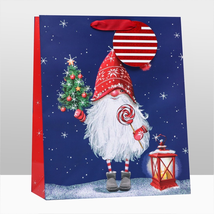 Стильный новогодний пакет с ламинацией используют как упаковку для подарка. Благодаря своему оригинальному дизайну и привлекательному внешнему виду он создаст праздничное настроение получателю и не оставит его равнодушным.