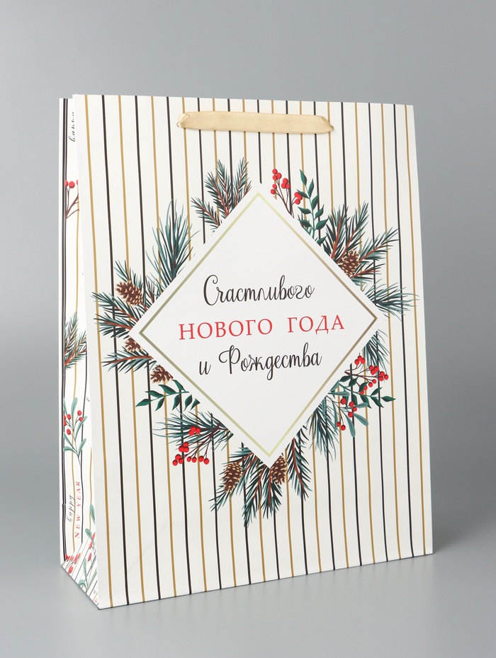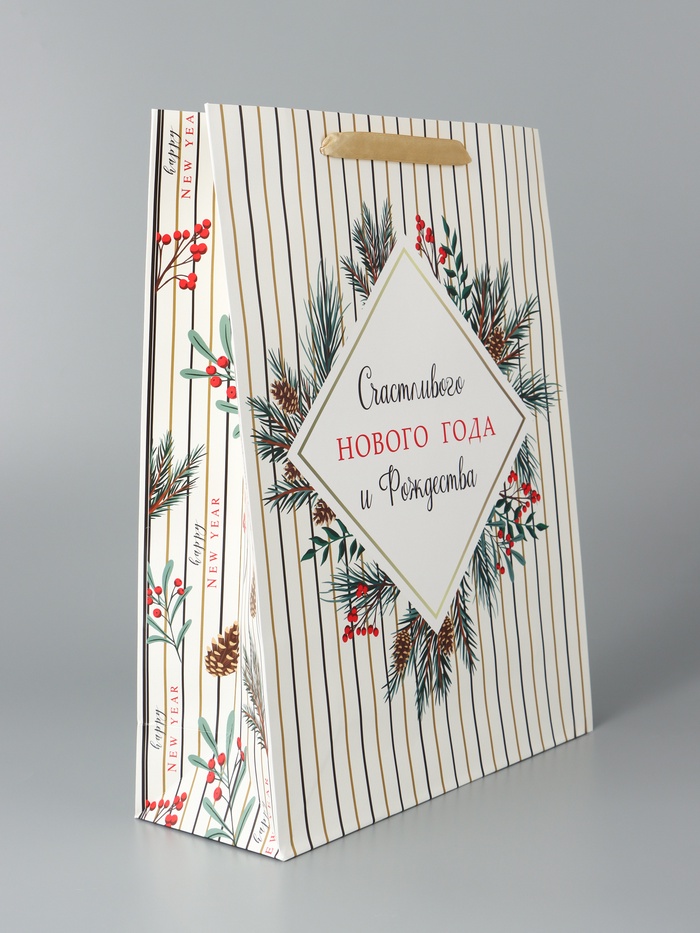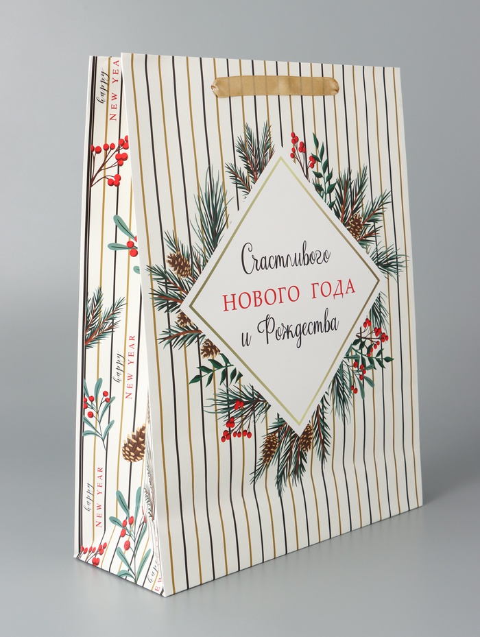Пакет подарочный новогодний ламинированный «Счастливого Нового года и Рождества», 33×42×10 см