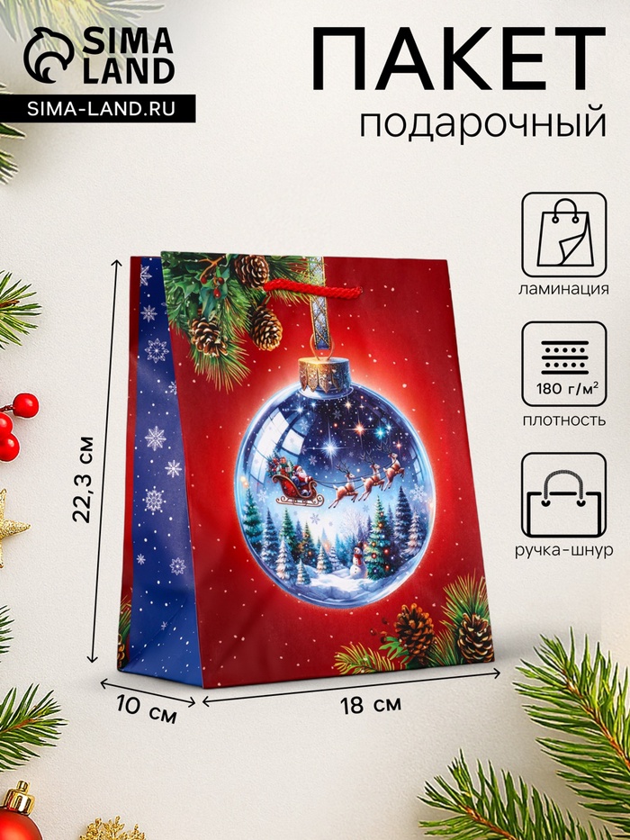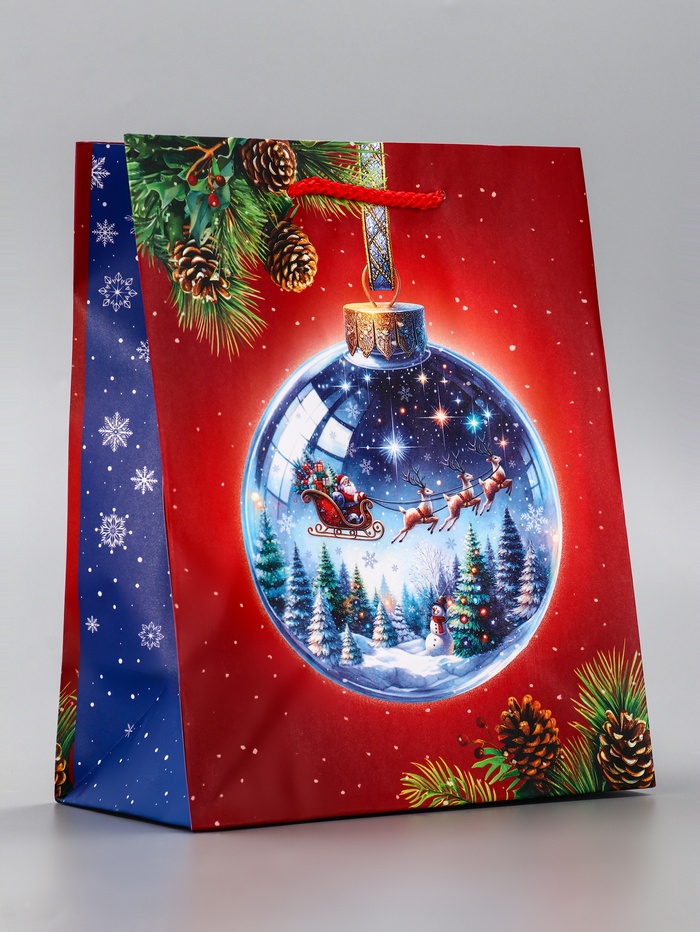 Упакуйте праздник в сияние новогодних шаров! Подарочный пакет «Новогодний шар» — это классическая упаковка с узнаваемым праздничным принтом. Ламинированная поверхность и яркий дизайн создают ощущение торжества даже до момента вручения подарка.
