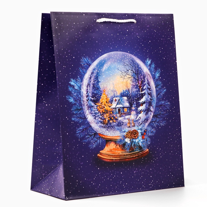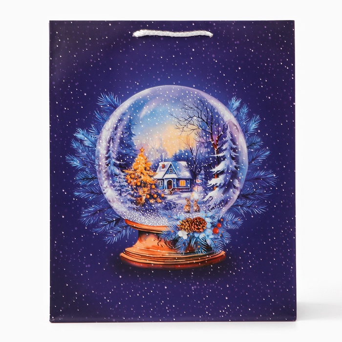 Пакет подарочный новогодний ламинированный «Стеклянный шар», на синем, 26×32×12 см