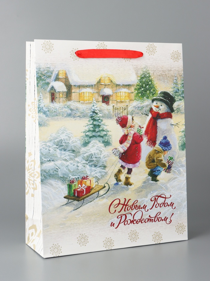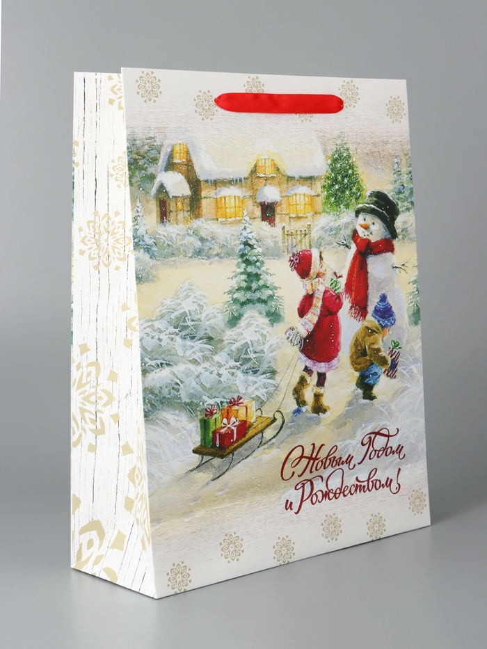 Пакет подарочный новогодний ламинированный вертикальный «Друзья»,33×42×10 см