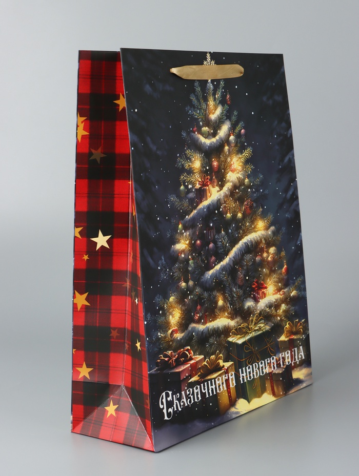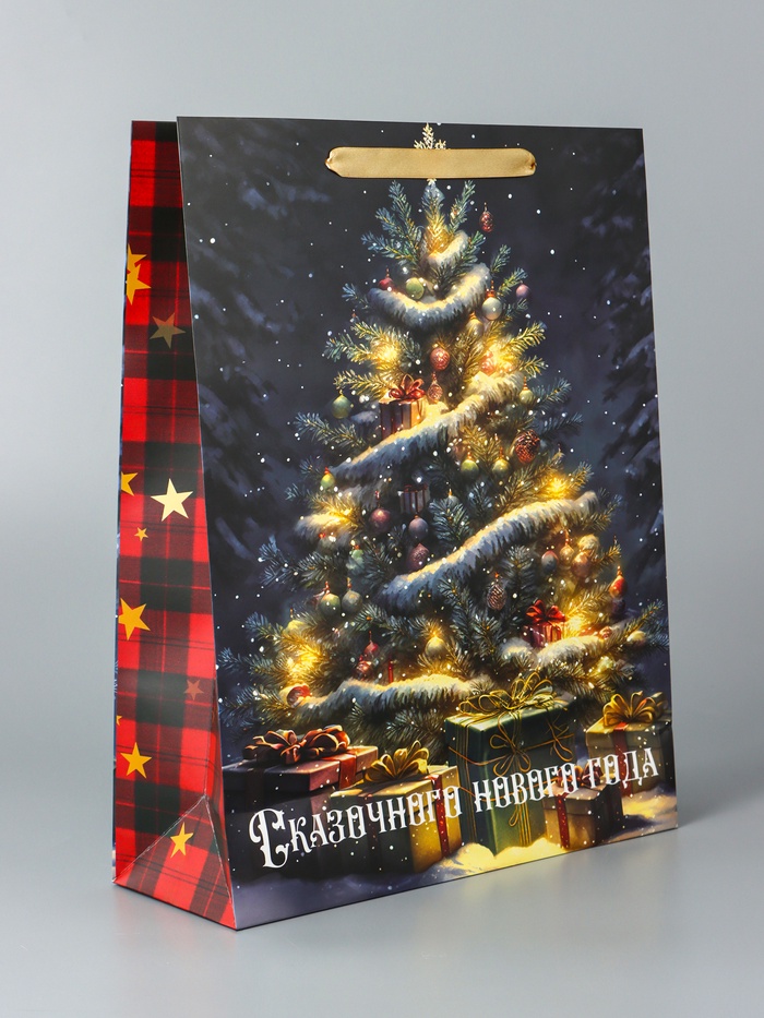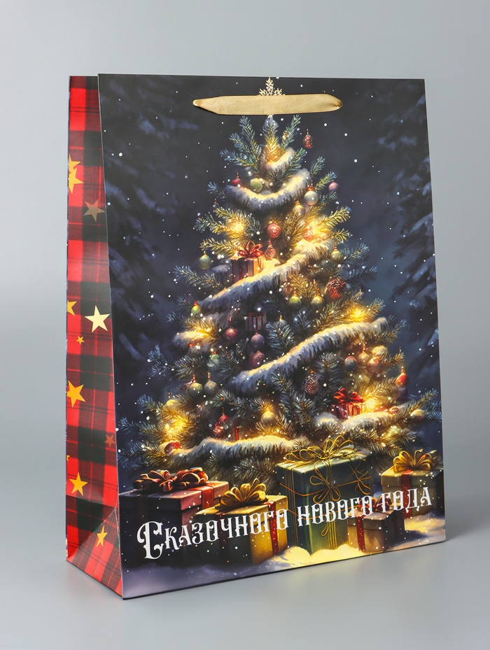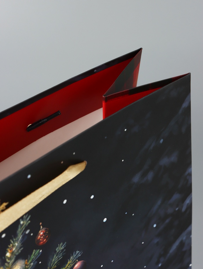 Стильный новогодний пакет с ламинацией используют как упаковку для подарка. Благодаря своему оригинальному дизайну и привлекательному внешнему виду он создаст праздничное настроение получателю и не оставит его равнодушным.