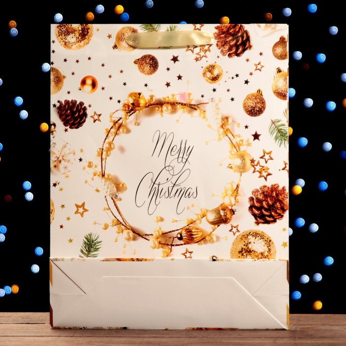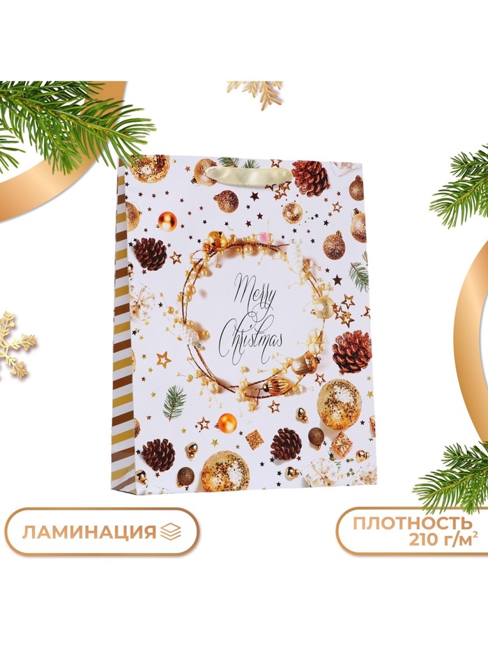 Пакет подарочный новогодний ламинированный вертикальный «Новый Год!»,33×42×10 см