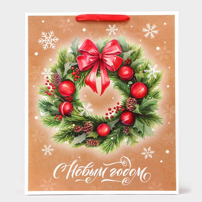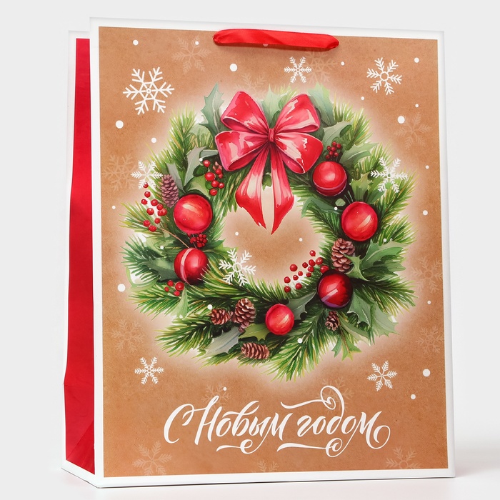 Пакет ламинированный новогодний вертикальный размером XL 40 × 49 × 19 см — идеальный выбор для упаковки новогодних подарков!