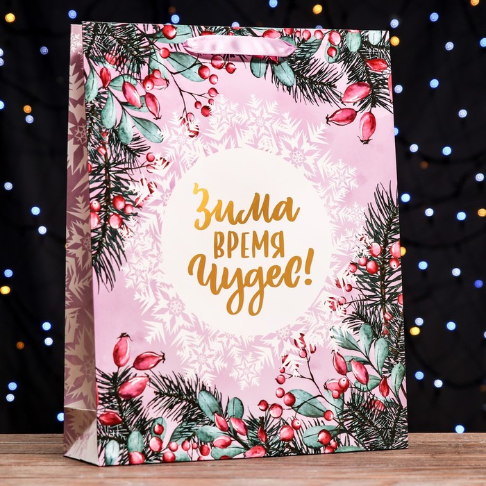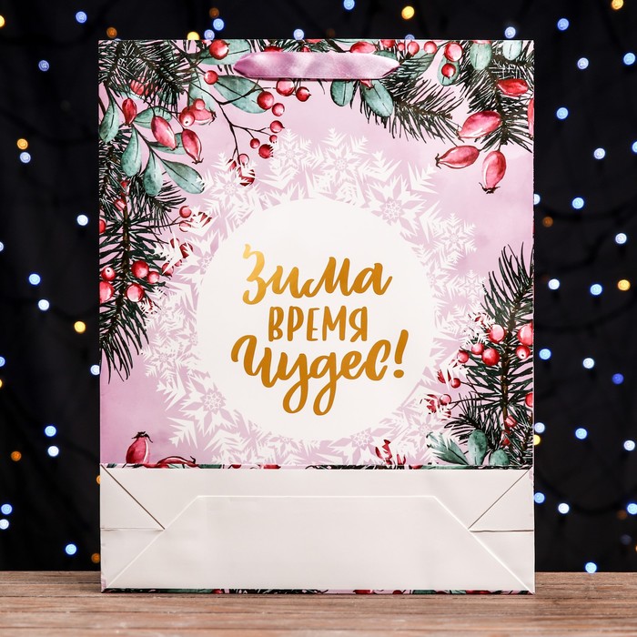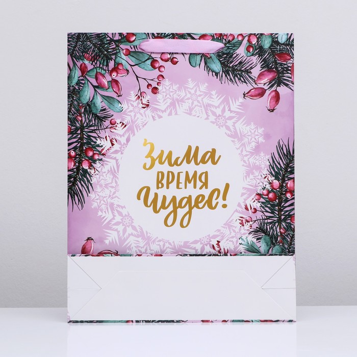 Пакет подарочный новогодний ламинированный вертикальный «Зима время чудес!»,33×42×10 см
