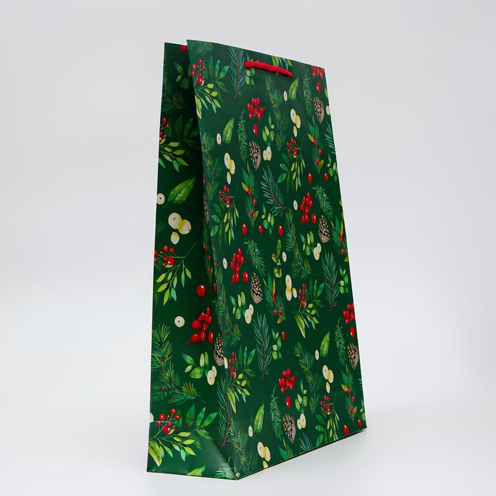 Пакет имеет плотную структуру и приятную на ощупь поверхность, что делает его удобным в использовании. Он украшен яркими новогодними узорами и изображениями, которые создают атмосферу праздника и волшебства.