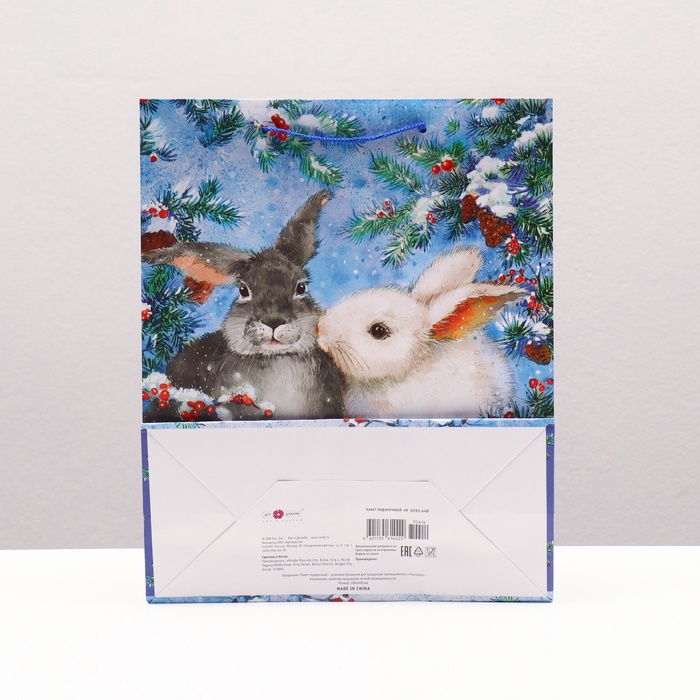 Новогодний подарочный пакет с ярким, красочным рисунком создаст праздничное настроение.
