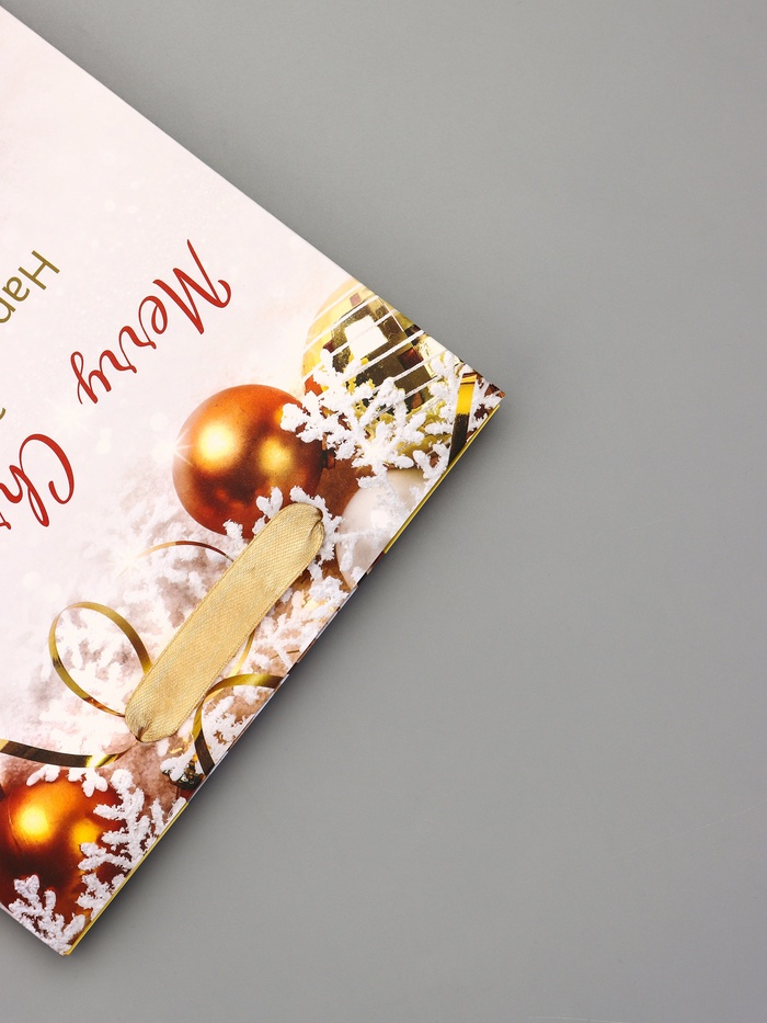 - Мягкие текстильные ручки: Ленточные ручки не перекручиваются, удобно лежат в руке. Выдерживают вес стандартных новогодних подарков.