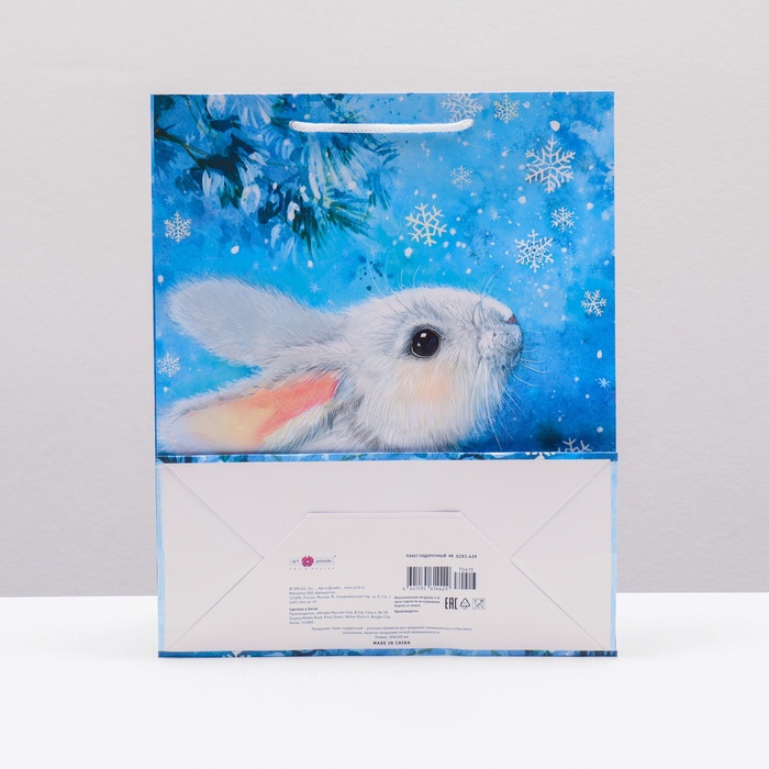 Пакет прямоугольной формы изготовлен из ламинированной бумаги.