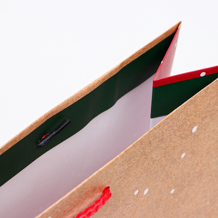 Подарочный новогодний пакет имеет оптимальные размеры, позволяющие упаковать различные предметы, от небольших сувениров до крупных подарков. Он также может быть использован для хранения и транспортировки продуктов питания, например сладких подарков под ёлку, так как материал, из которого он изготовлен, является безопасным для контакта с пищевыми продуктами.