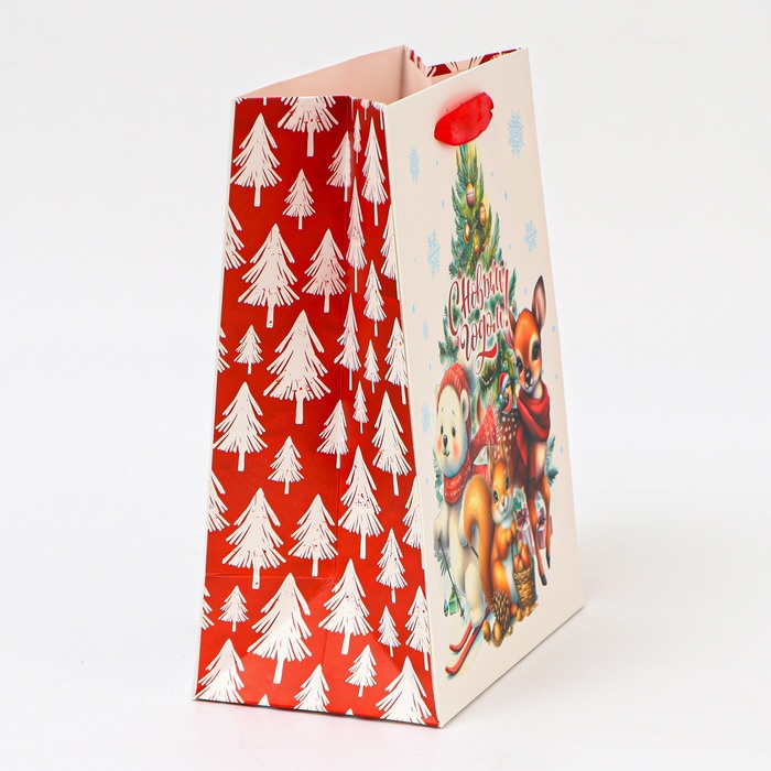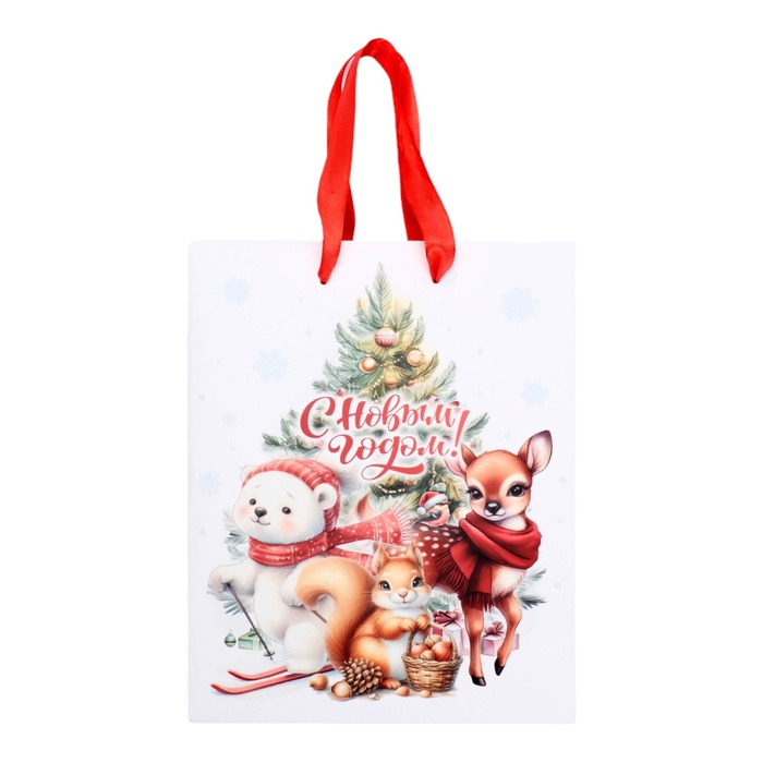 Пакет подарочный новогодний ламинированный «Зверята», MS 18×23×10 см