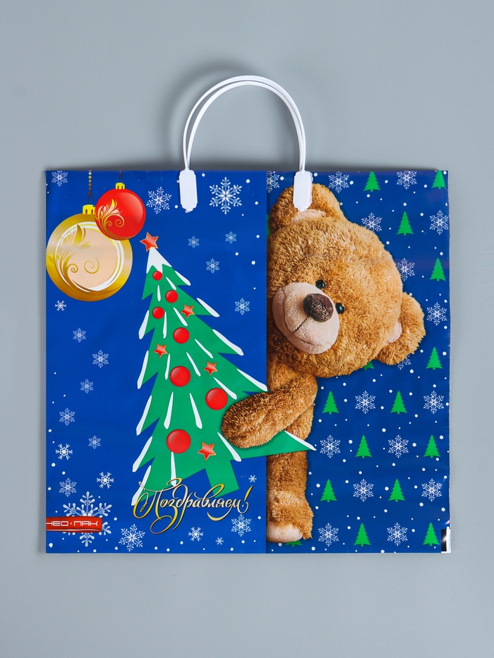 Новогоднее чудо в каждой детали! Праздничный пакет с мишкой (37×35 см) — очаровательная упаковка для новогодних подарков. Создает атмосферу зимней сказки и детской радости.