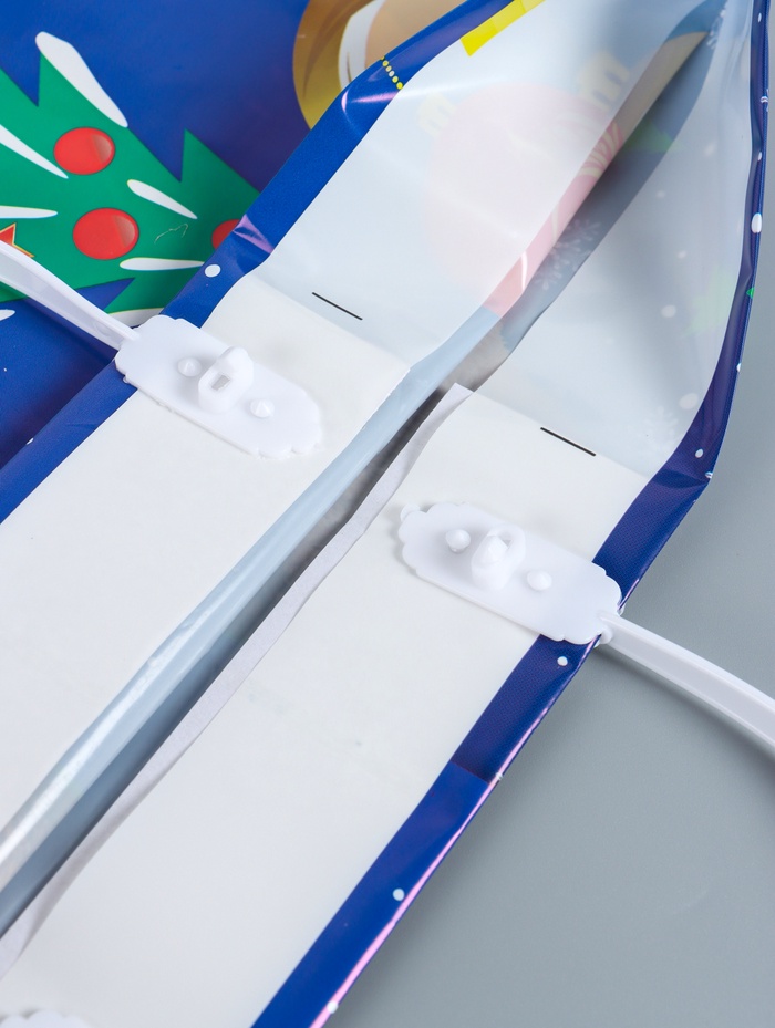 - Надежная пластиковая ручка: Удобно лежит в руке, не перекручивается. Сохраняет форму даже с тяжелыми подарками — комфортно нести в гости.