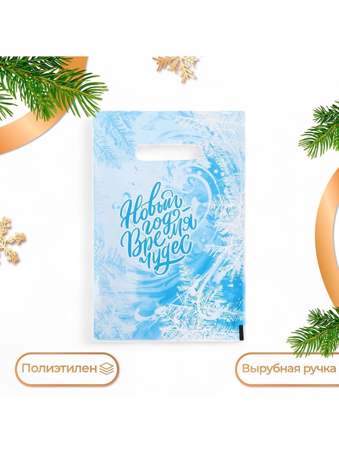 Пакет подарочный новогодний «Морозный узор», полиэтиленовый с вырубной ручкой, 20×30 см, 30 мкм