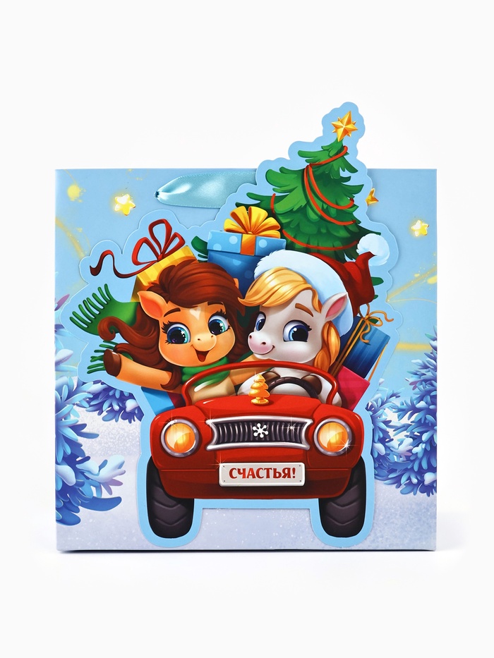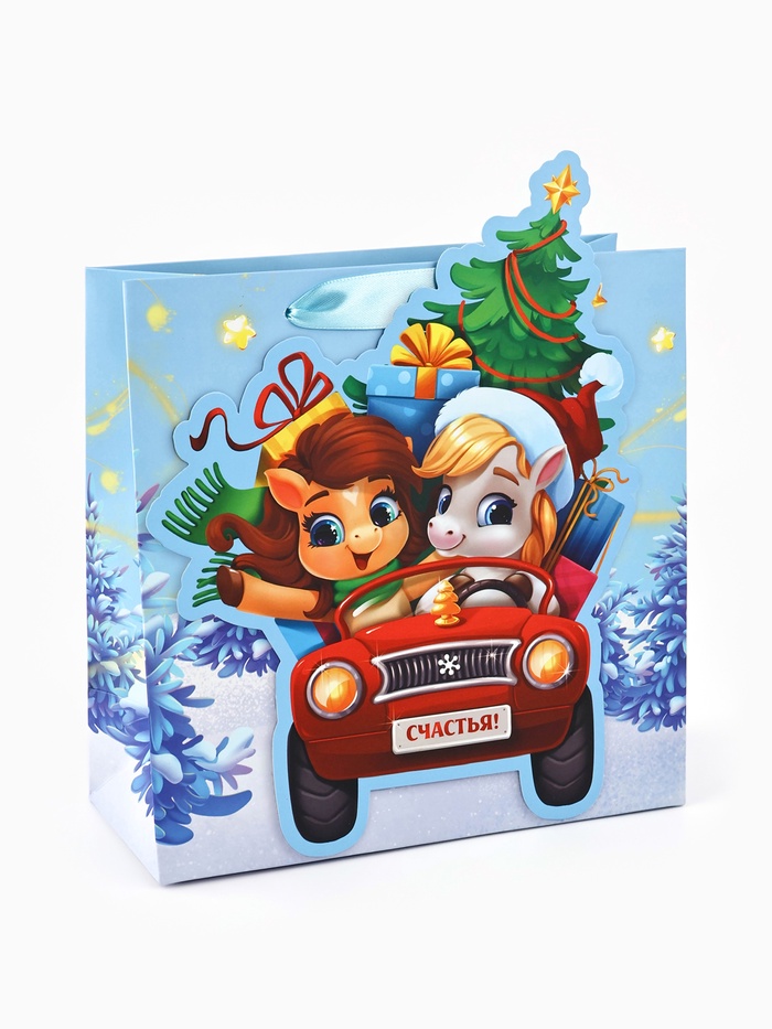 Пакет подарочный новогодний «Новый год 2026», лошади, 22×22×10 см