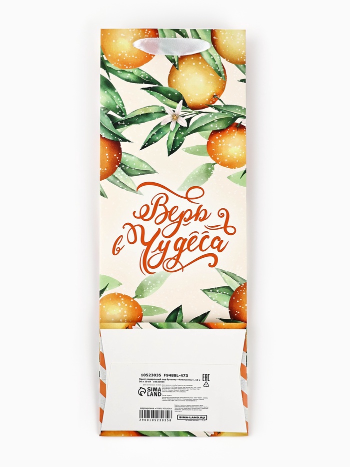 - Размеры пакета составляют 12 х 36 х 8,5 см, что позволяет удобно разместить внутри бутылку и сохранить её целостность.