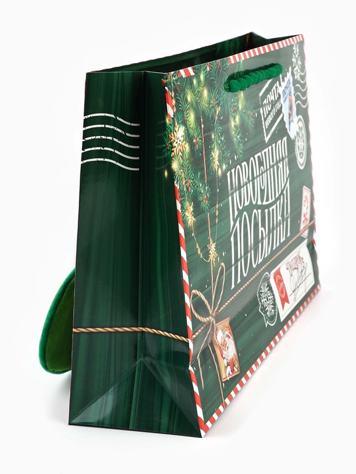 Пакет подарочный «Новогодний подарок», с носком для подарков и шильдиком, 25.5×30×9 см