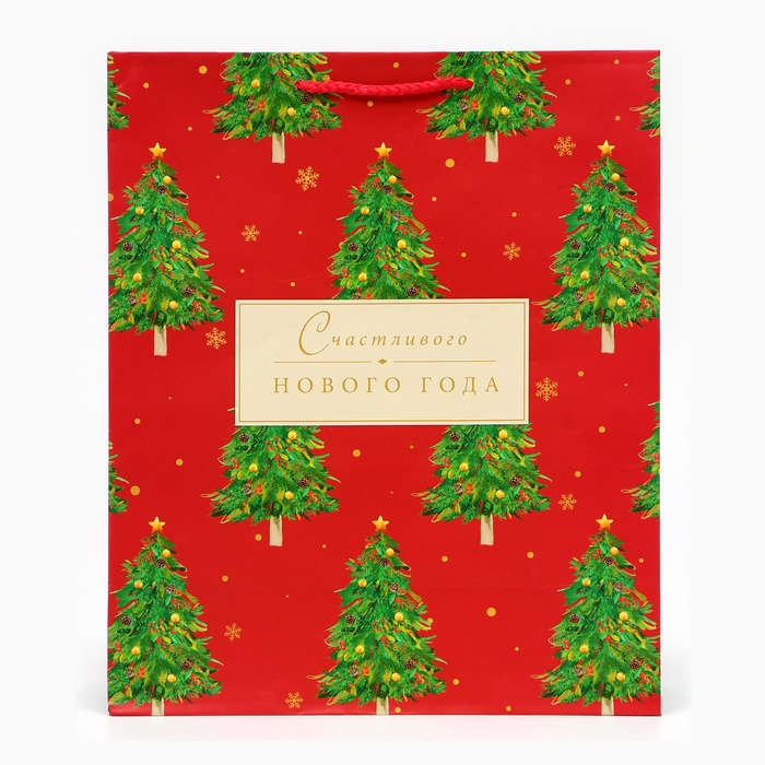 Пакет подарочный новогодний «Счастливого Нового года», на бежевом, 26×32×12 см