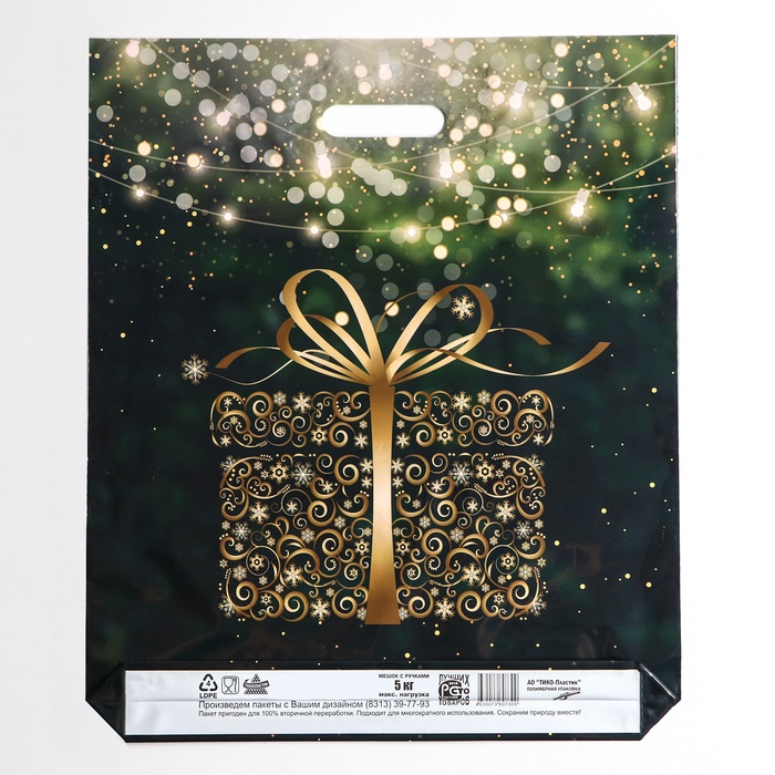 Праздничный блеск для особенных подарков! Новогодние пакеты «Золотой подарок» — роскошная упаковка для самых ценных сюрпризов. Яркий дизайн с золотыми элементами превращает обычный презент в торжественный жест.