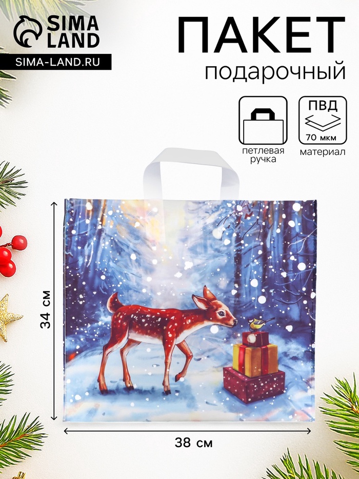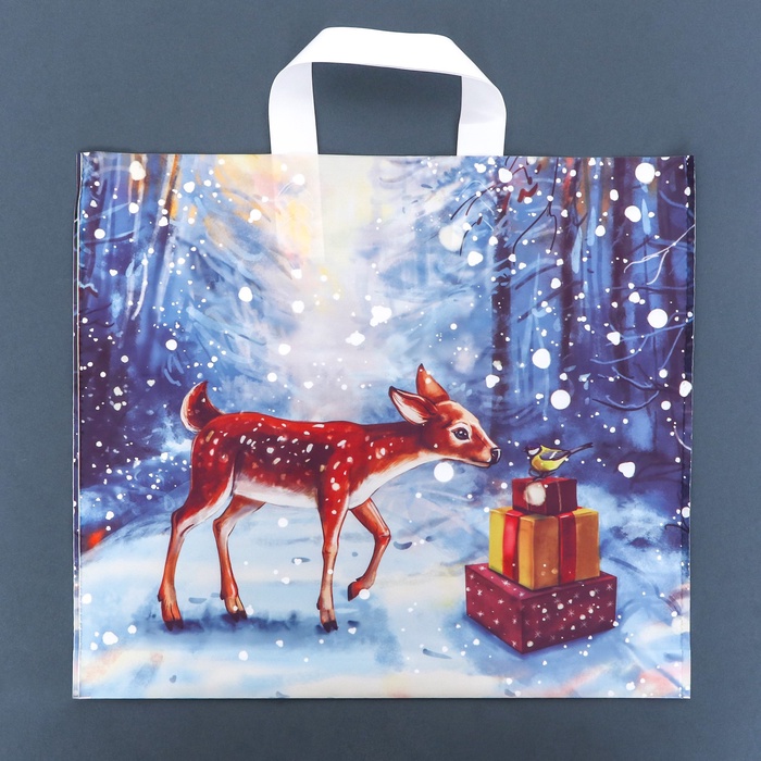 Пакет подарочный «Новогодняя тропа», полиэтиленовый с петлевой ручкой, 37×34 см, 70 мкм