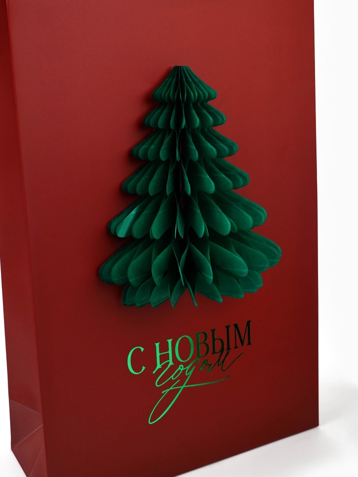 Пакет подарочный «Новый год», тиснение, с бумажной объёмной ёлкой, 25.5 х 30 х 9 см