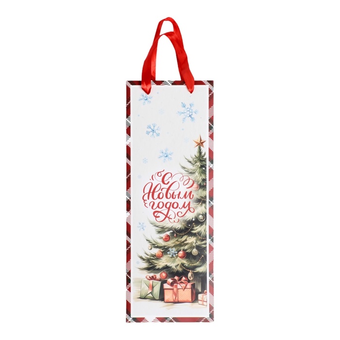 Подарочный пакет новогодний — идеальный выбор для упаковки бутылки.
