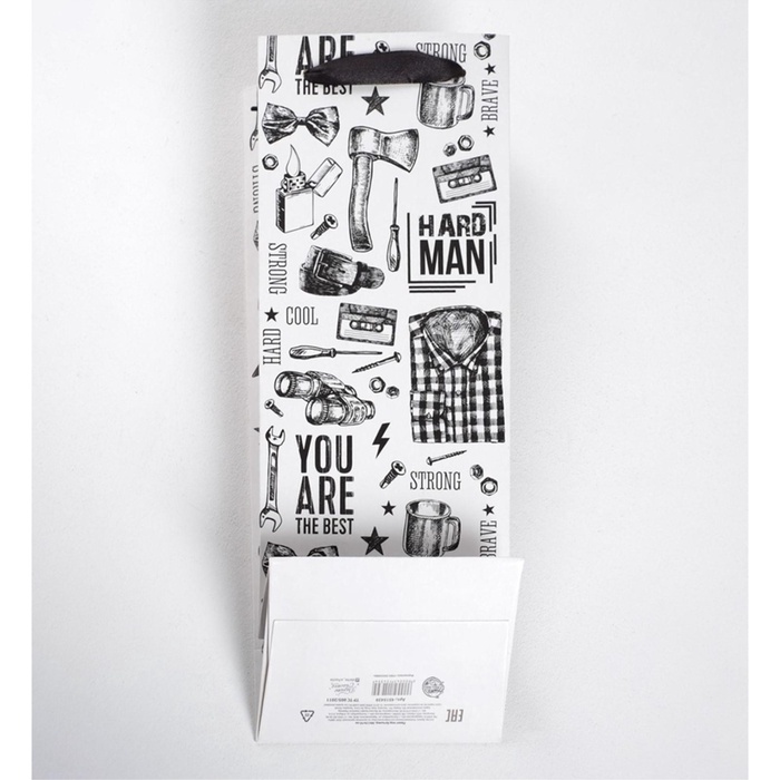 Пакет подарочный под бутылку, упаковка, «For real man», 36 х 13 х 10 см