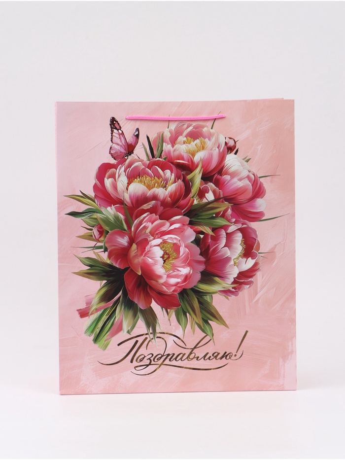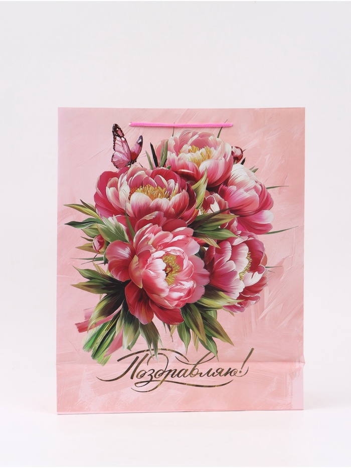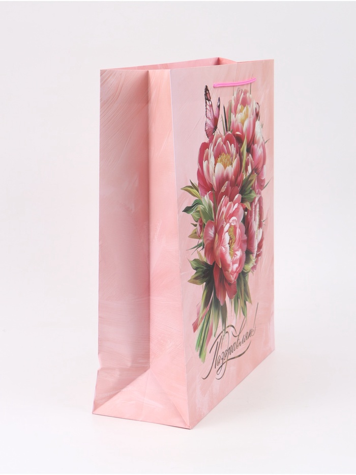 Пакет подарочный «Поздравляем»,цветы , 40 × 15 × 49 см