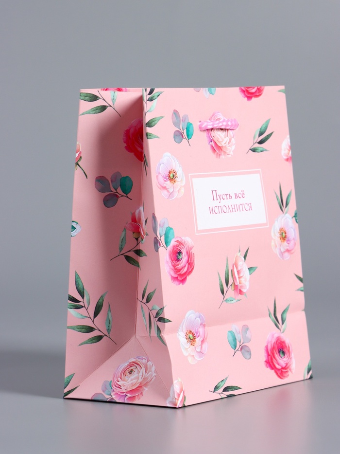 Пакет подарочный "Пусть всё исполнится" ламинированый 11,5 х 14,5 х 6,5 см