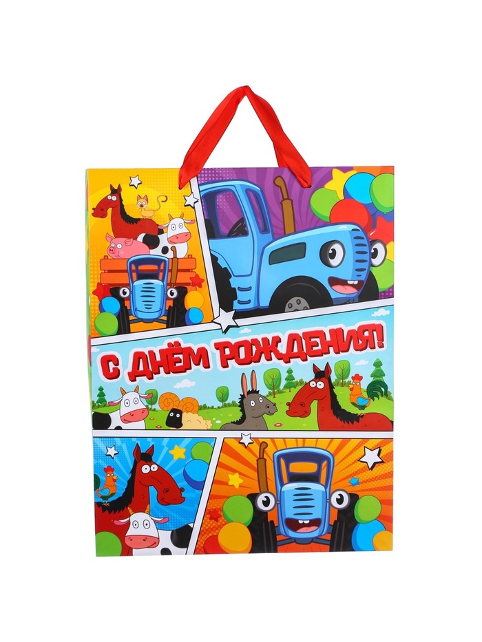 Пакет подарочный «С днём рождения», 31×40×11.5 см, упаковка, Синий трактор