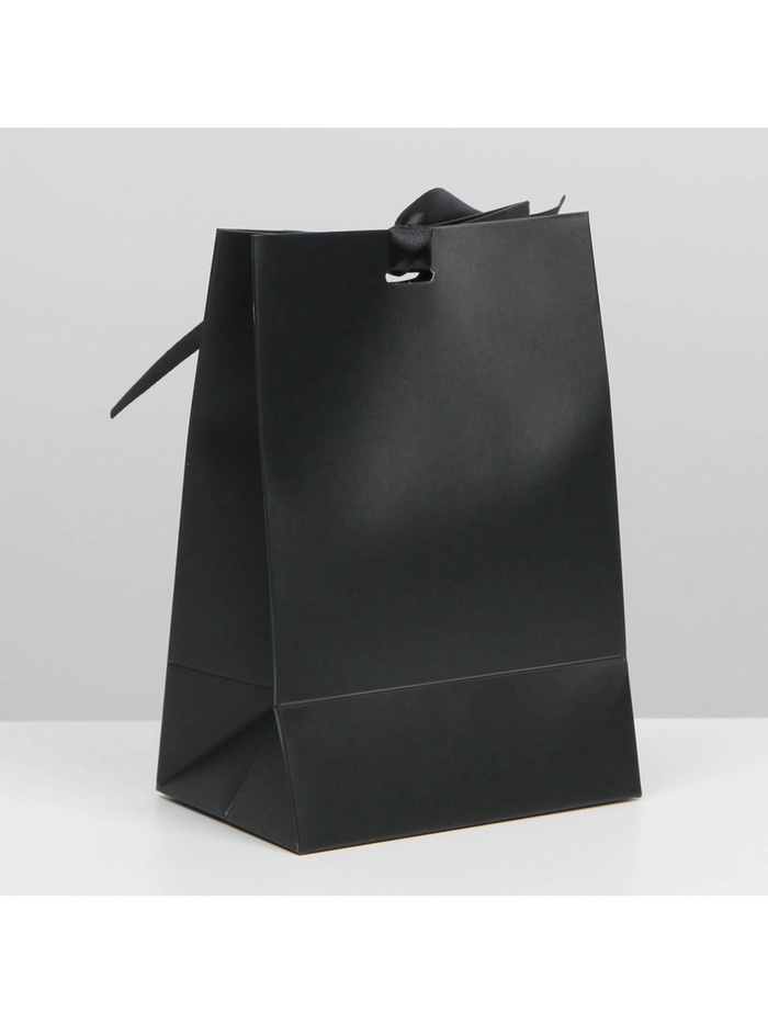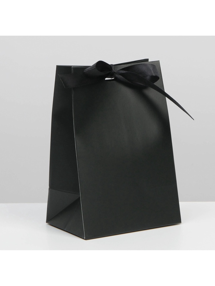 Пакет подарочный с лентой, упаковка, «Чёрный», 13 х 19 х 9 см