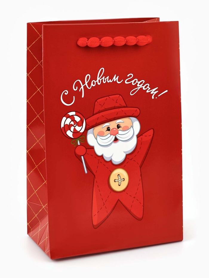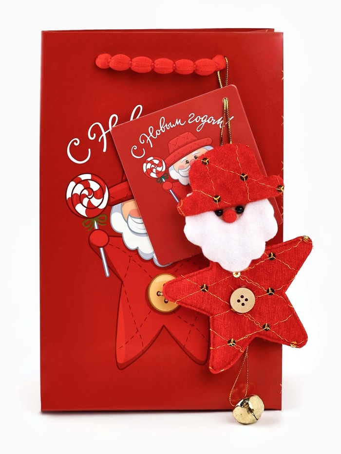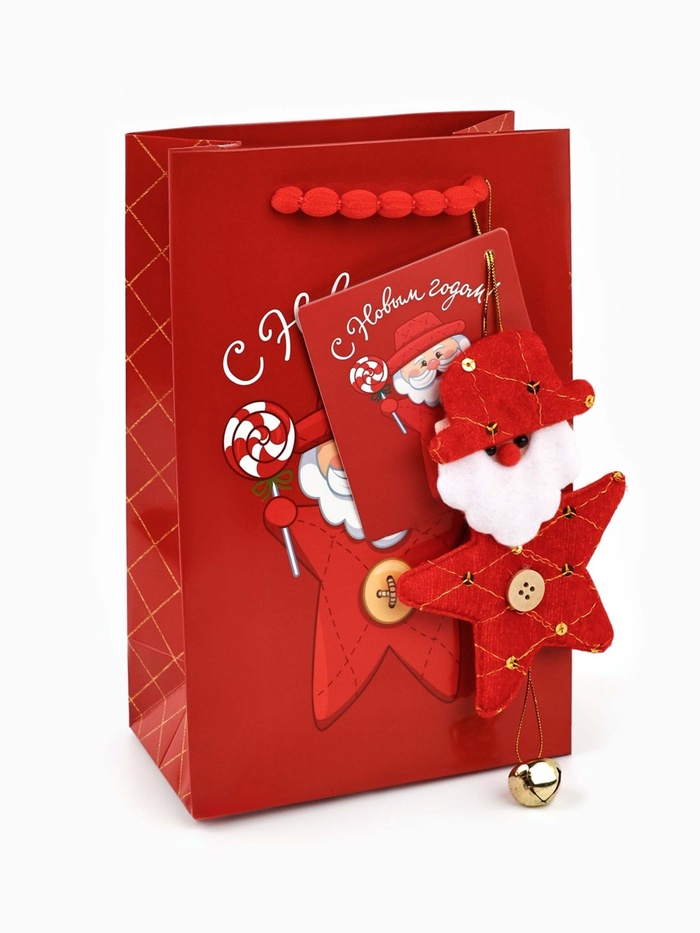 Пакет подарочный «С Новым годом», с ёлочной игрушкой и шильдиком, Дед Мороз, 18×23×11 см