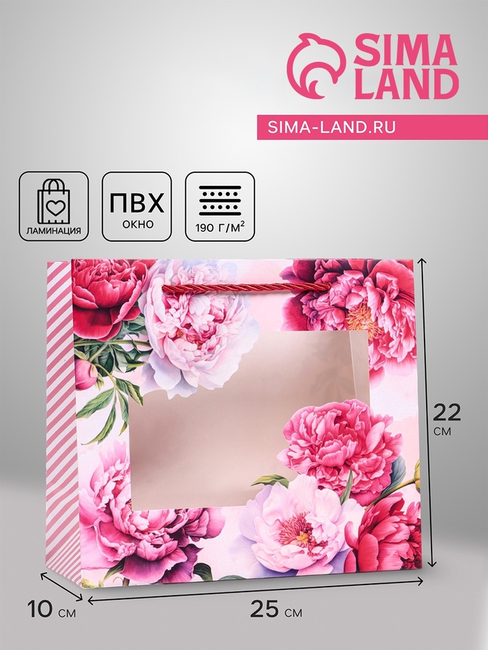 Подарочный пакет с окошком в стиле «Пионы» — это изящное решение для упаковки подарков к женским праздникам или торжественным событиям. Его нежный розовый оттенок и цветочный дизайн создают атмосферу весеннего настроения, а удобная форма и прочная конструкция делают его практичным выбором для подарков.