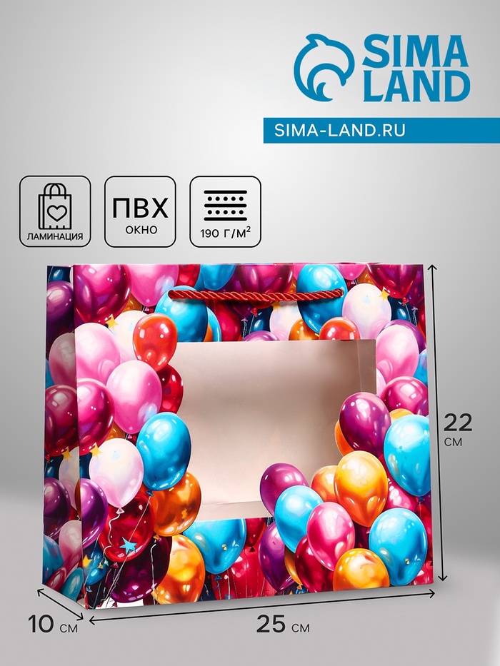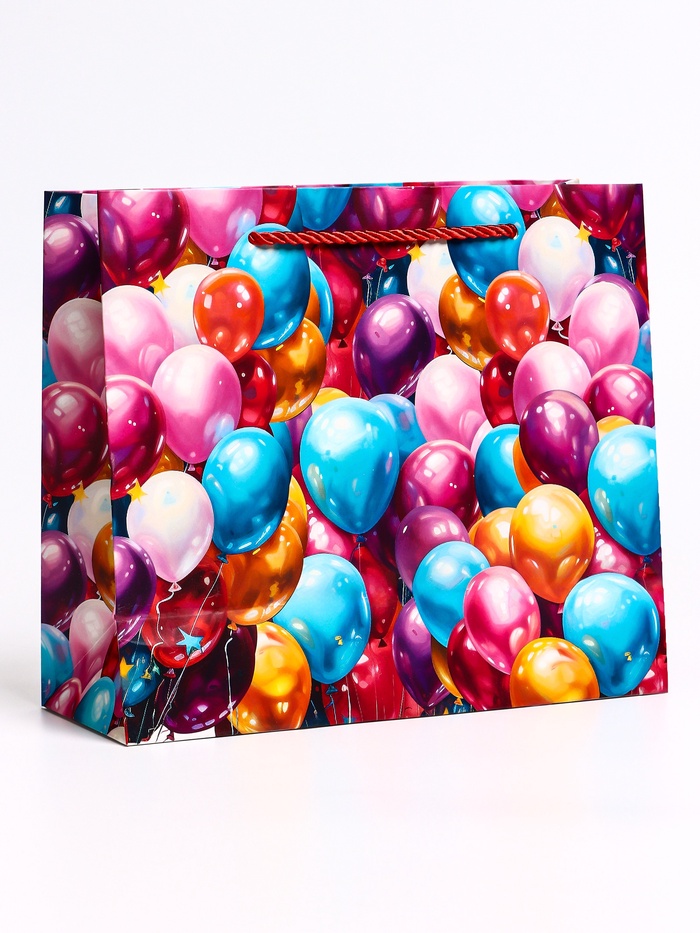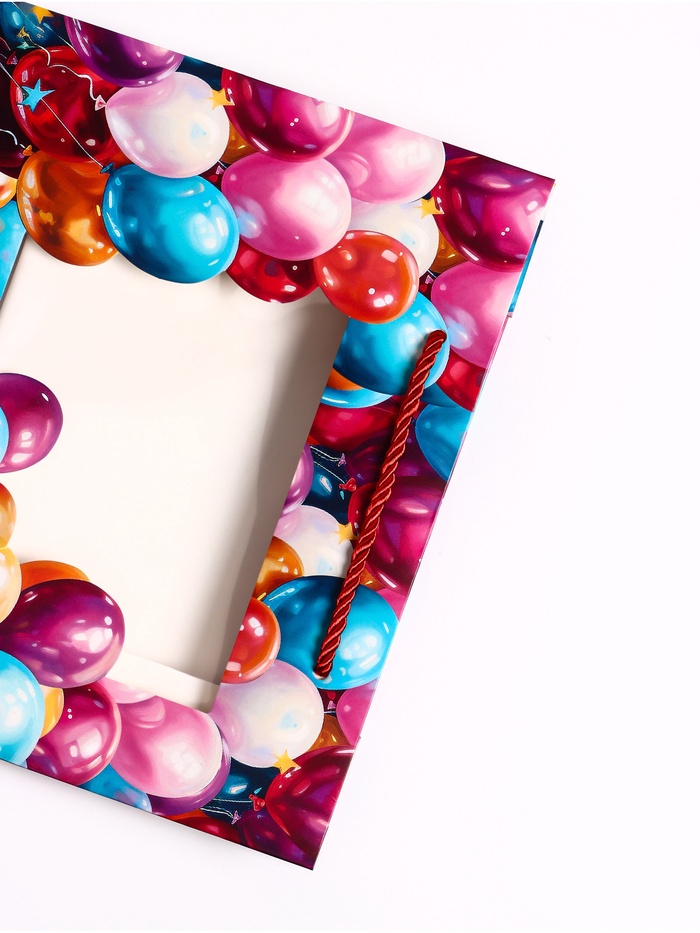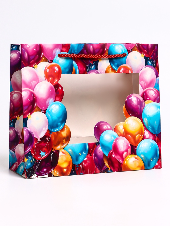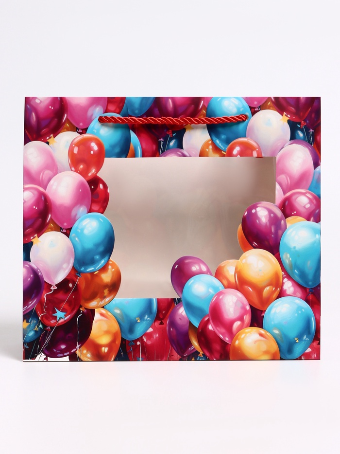 Этот пакет не просто упаковка — он часть подарка. Его креативный дизайн с окном в виде шаров привлекает внимание и подчёркивает вашу заботу о деталях. Благодаря прочному материалу и стильной отделке, пакет выдерживает нагрузку до 2 кг, сохраняя форму и презентабельный вид. Универсальная тематика делает его подходящим для любого праздника, а яркие цвета добавляют радости и веселья.