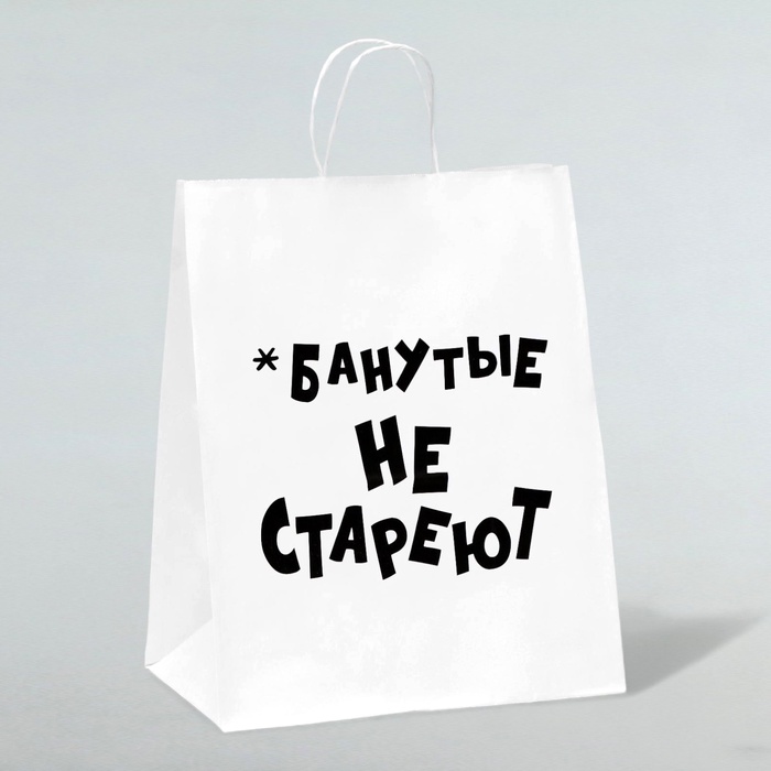 Подарок с юмором для вечно молодых! Крафт-пакет «Не стареют» — оригинальная упаковка для тех, кто умеет смеяться над возрастом. Плотная крафт-бумага 90 г/м² с кручёным шпагатом выдерживает до 3 кг, а остроумная надпись добавит позитива вашему презенту.