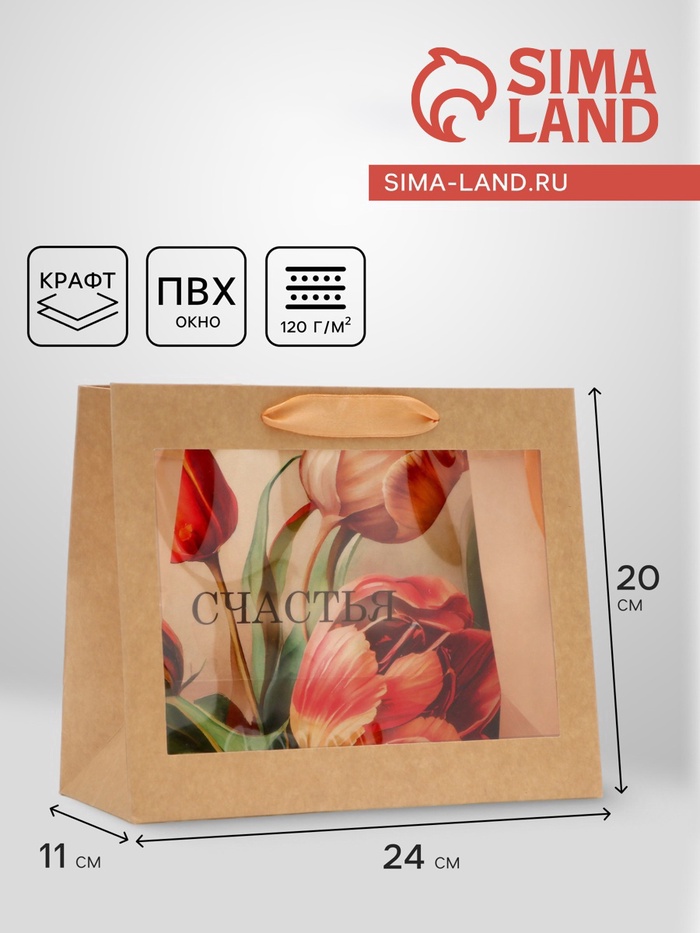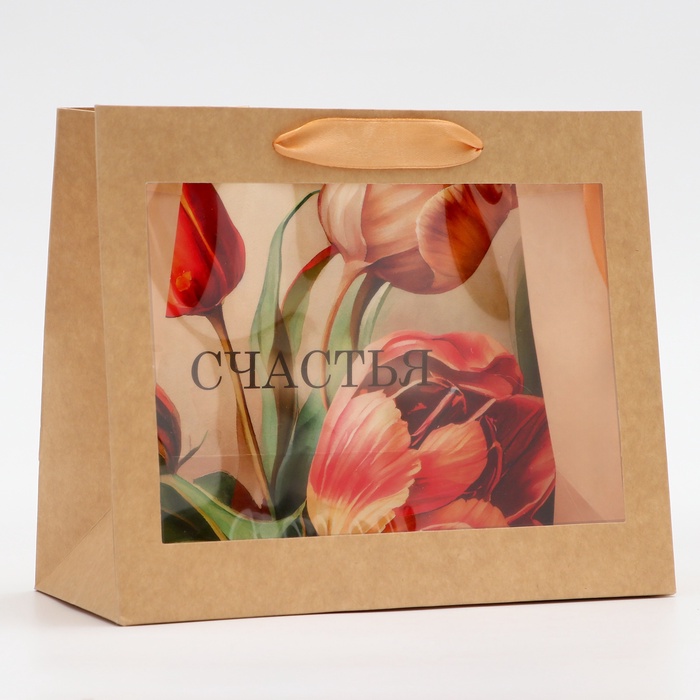Пакет подарочный с PVC окном, «Счастья», 24×11×20 см