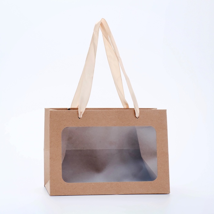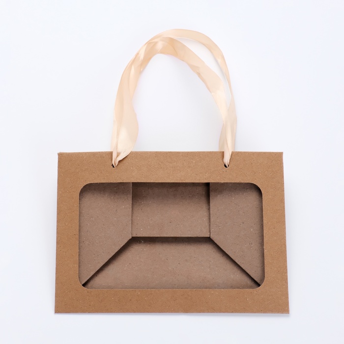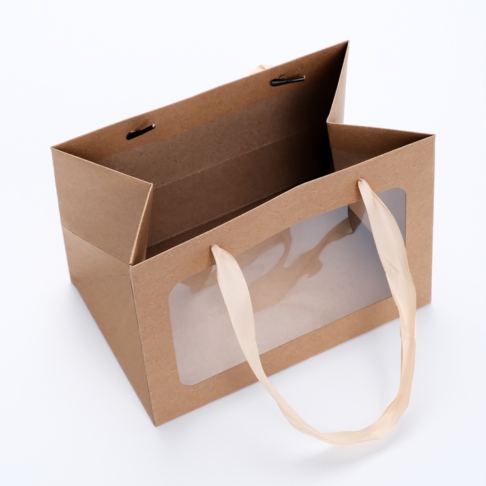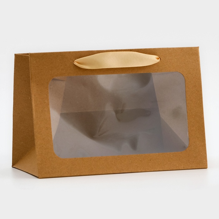 Пакет подарочный с широким дном и окном 20×14×13.2 см, крафт