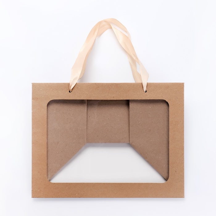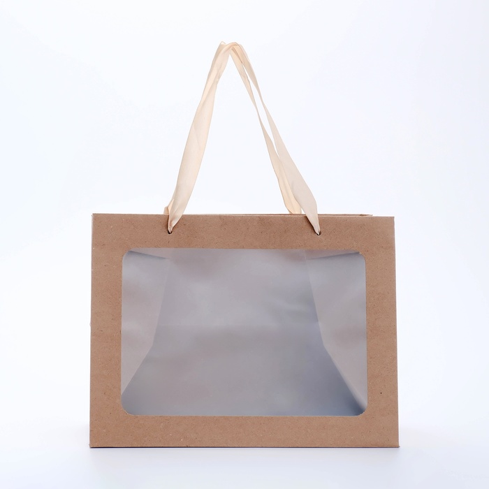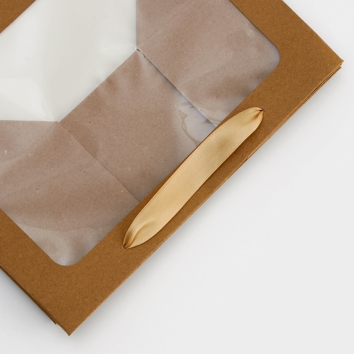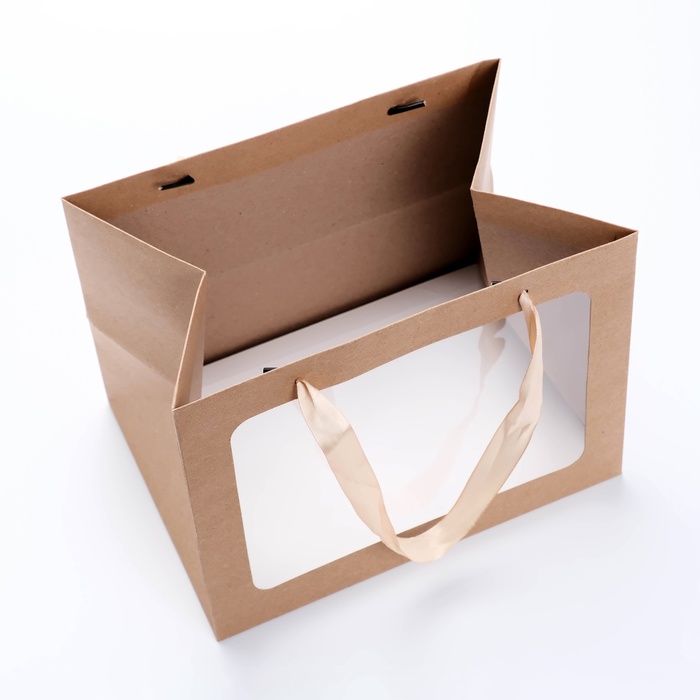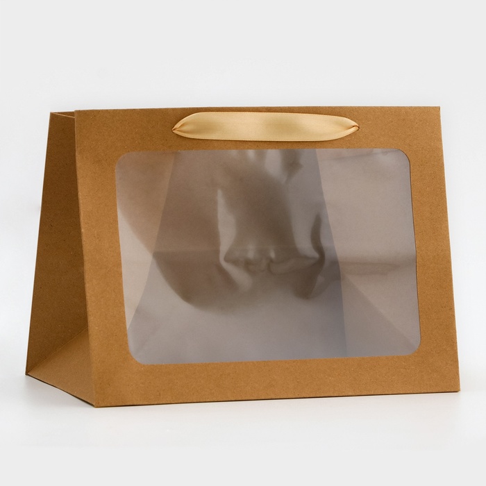 Пакет подарочный с широким дном и окном 25×19×18 см, крафт