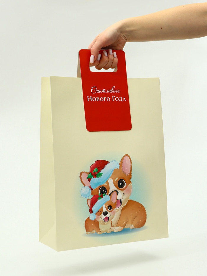Пакет подарочный с вырубной ручкой «Корги» 30×40×12 см см, красный
