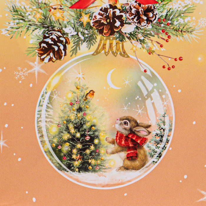 Пакет имеет плотную структуру и приятную на ощупь поверхность, что делает его удобным в использовании. Он украшен яркими новогодними узорами и изображениями, которые создают атмосферу праздника и волшебства.
