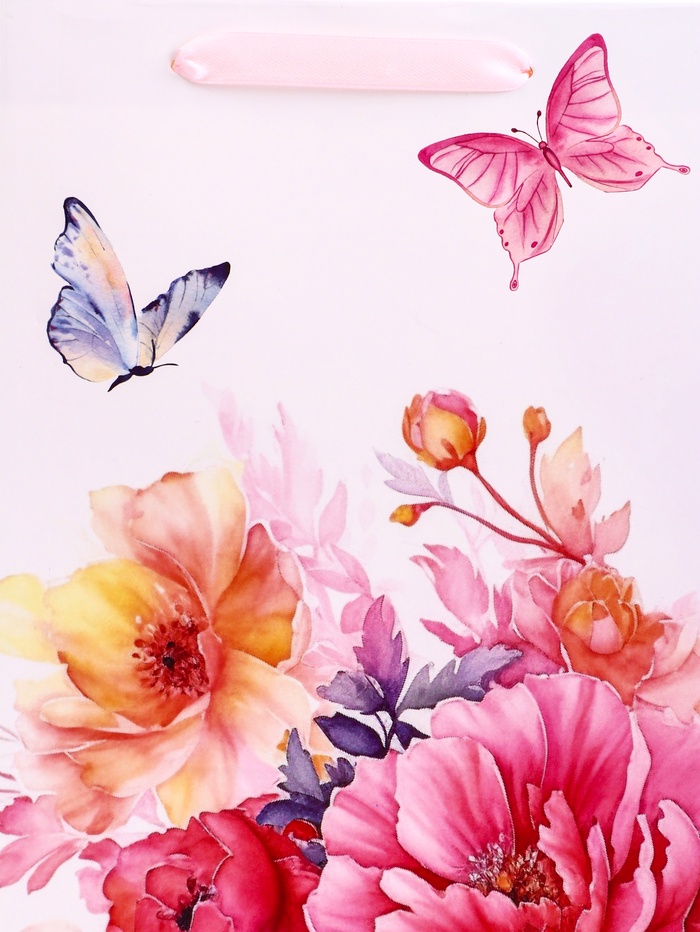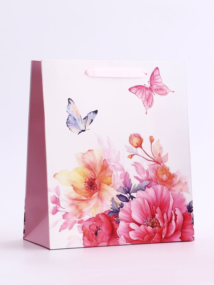 Пакет подарочный вертикальный «Бабочки в цветах», ML 23×27×11.5 см