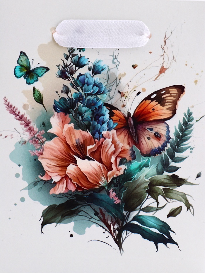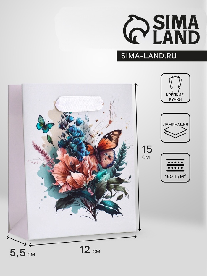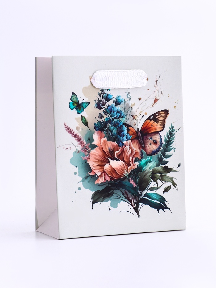 Пакет подарочный вертикальный «Большие бабочки», S 12×15×5.5 см