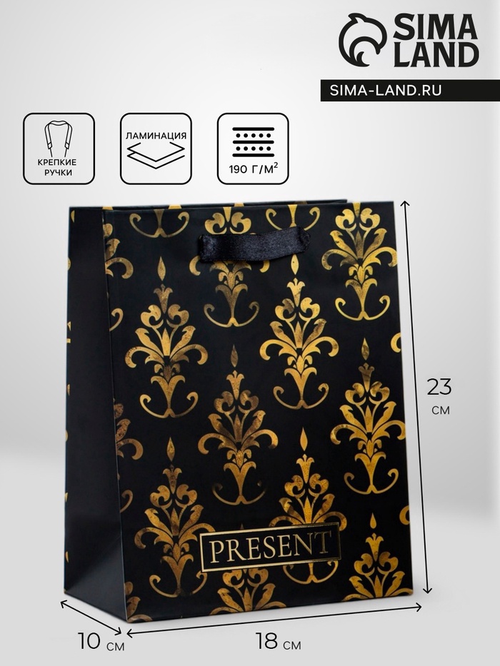Пакет подарочный вертикальный «Черное золото», MS 18×23×10 см