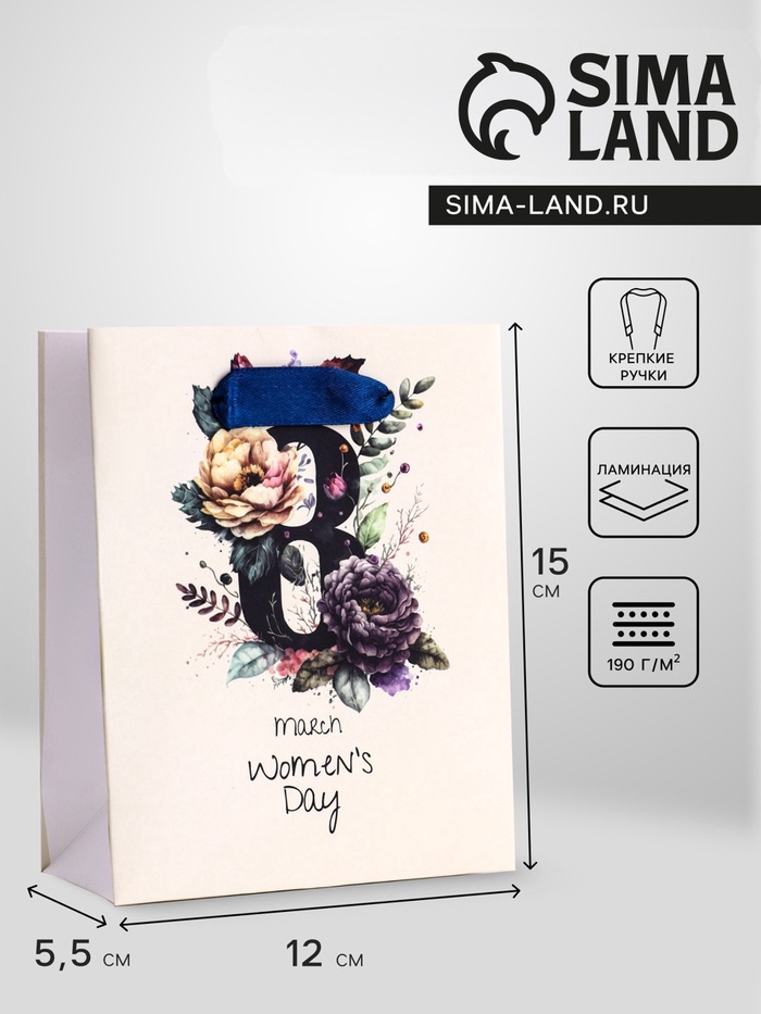 Пакет подарочный вертикальный «День счастья», S 12×15×5.5 см