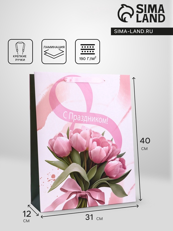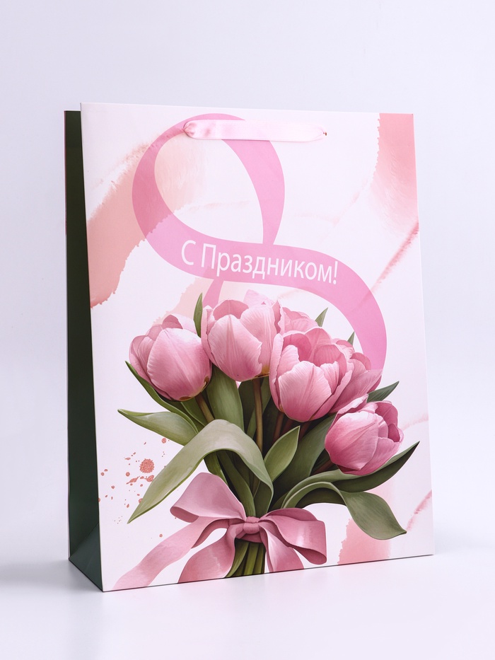 Пакет подарочный вертикальный «С праздником», L 31×40×12 см