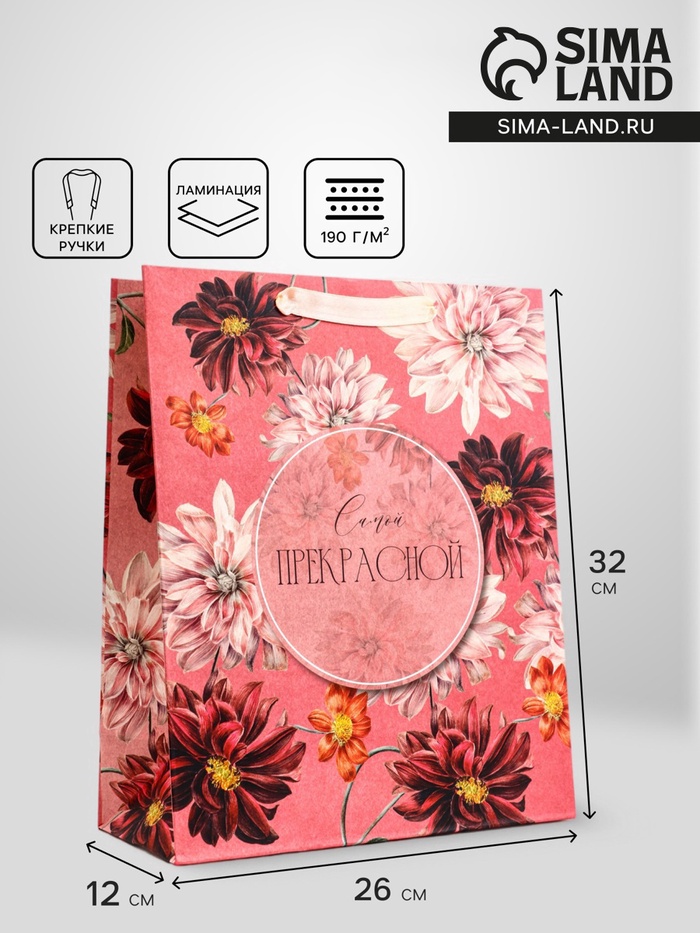 Пакет подарочный вертикальный «Самой прекрасной», 26×32×12 см