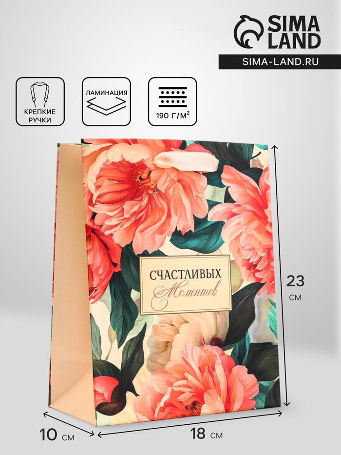 Пакет подарочный вертикальный «Счастливых моментов», 18×23×10 см